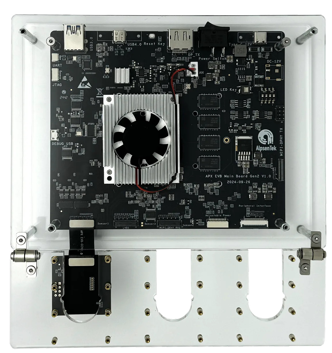 The APX EVK Gen2 incorporate an APX hvs sensor module, a robust FPGA, data storage unitspower management unit and various data interfaces, equipped with firmware, software, andalgorithmic functions to expedite user-driven development. it offers the flexibility andextendable solutions required for rapid setup, along with substantial processing power forexperimenting with various product development strategies.